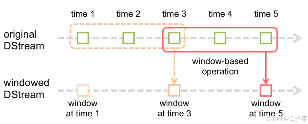 Window Operations 可以设置窗口大小和滑动窗口间隔来动态获取当前 Streaming 的状态基于窗口的操作会在一个比 StreamingContext 的 batchDuration(批次间隔)更长的时间范围内,通过整合多个批次的结果,计算出整个窗口的结果。
