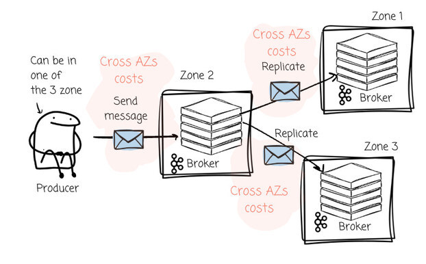 除了资源效率低下的问题,Broker 级别的数据复制在云端多可用区(AZ)部署中还会带来巨大的、往往被忽视的财务黑洞。这种成本主要体现在以下两个方面: