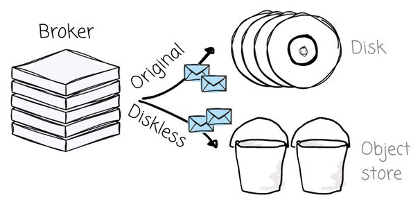 所谓 Diskless Kafka 架构(Diskless Architecture),指的是一种将所有消息彻底从 Broker 中剥离,并转而全量存储于对象存储(Object Storage)的架构模式。