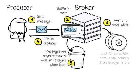 相较于等待一批消息被完整写入对象存储,在消息持久化至 WAL(磁盘)后立即发送 ACK 响应,无疑要快得多。