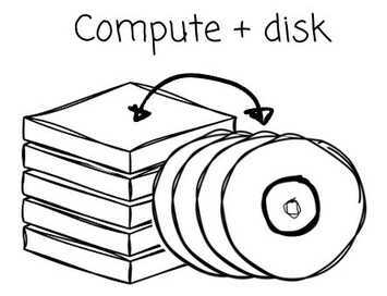 那时的网络带宽相当有限;因此,构建系统的标准做法是将计算与存储紧密绑定在一起(即存算一体)。