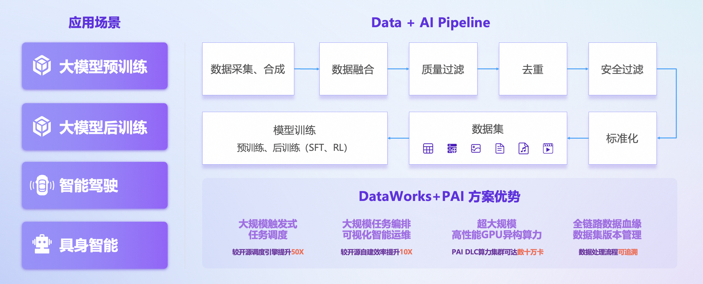 这一能力已在多个客户场景中验证价值。例如,在自动驾驶领域,某车企利用该机制实现了“数据标注 → 数据合成 → 数据融合 → 模型训练”的全自动闭环,通过 DataWorks 替代原有的自建 Airflow 方案,实现单日处理 clips 突破百万级,显著加速模型迭代节奏。