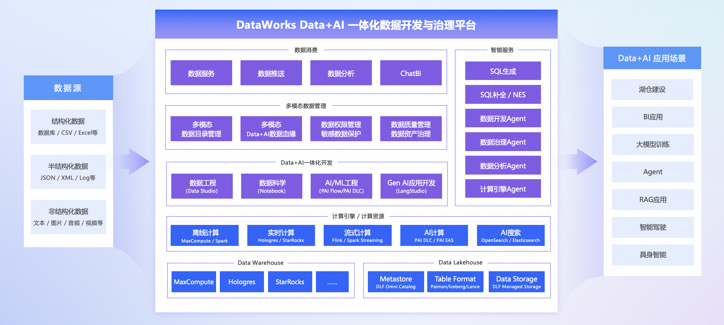 因此,DataWorks 提出 “Data+AI 一体化”战略——让数据平台不仅是 AI 的“燃料供应商”,更是其“发动机与调度中心”,真正实现数据与 AI 的双向赋能,打造企业在 AI 时代的数据中枢。