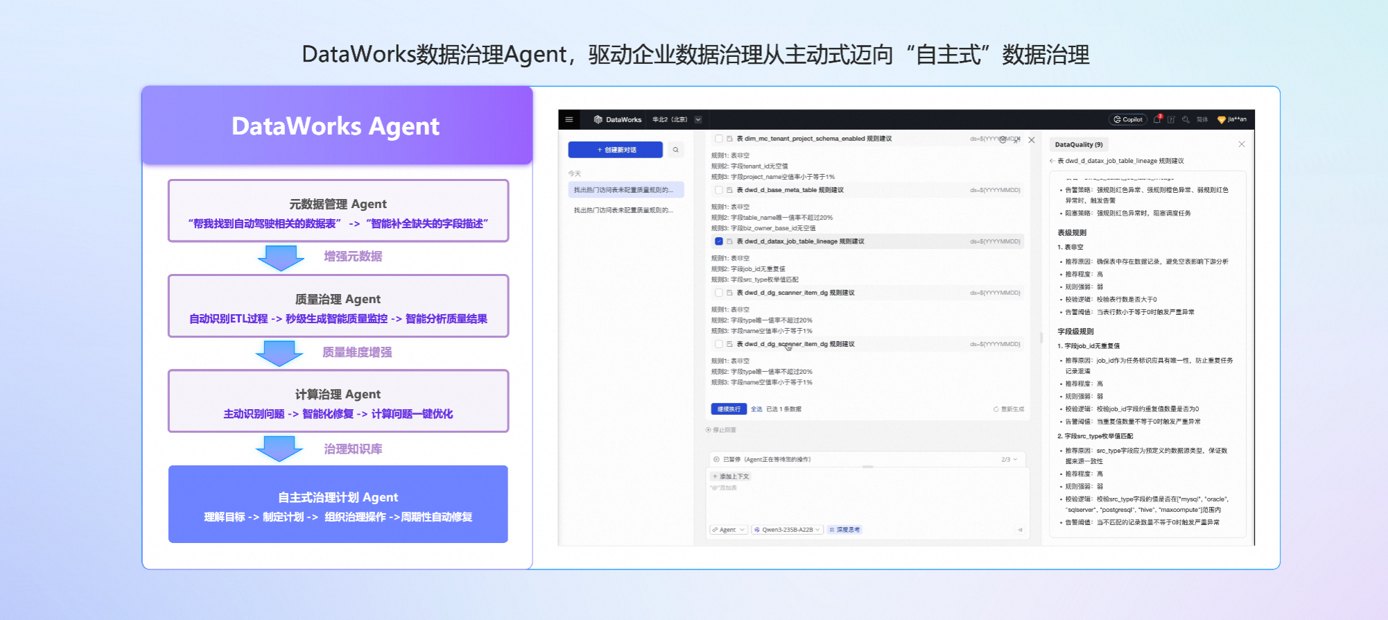 DataWorks 数据治理 Agent 将 AI 深度融入数据治理全流程: