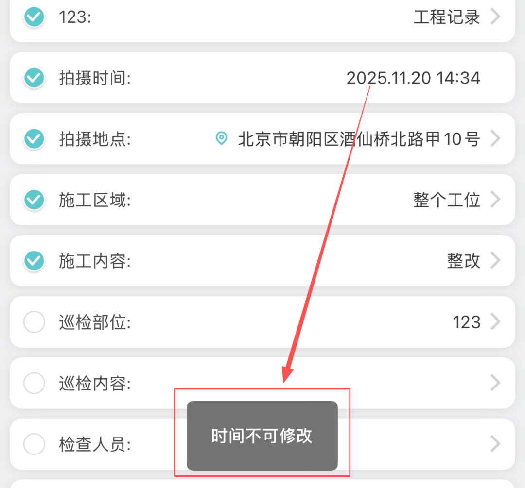 2️⃣ 拍摄后需要手动整理,添加时间、地点、项目信息,工作繁琐且易出错;