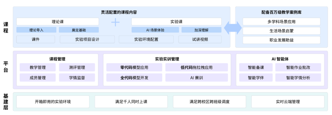 在“AI+教育”方面,和鲸推出覆盖了从通识到专业的“1+X+Y”体系化人工智能教育解决方案,赋能从通识教育到“学科+AI”的人工智能教育体系建设。该方案将人工智能技术融入教学全流程,通过阶梯式课程设计与实战平台支撑,助力高校实现分阶段、多层次的数字化教学转型。目前,由和鲸支持的 AI 通识课程已落地南京大学、同济大学、北京中医药大学等多所高校,为不同专业背景的学生提供低门槛、高互动的 AI 启蒙与实践路径,有效推动跨学科人才培养。