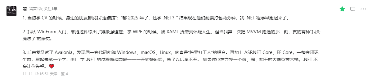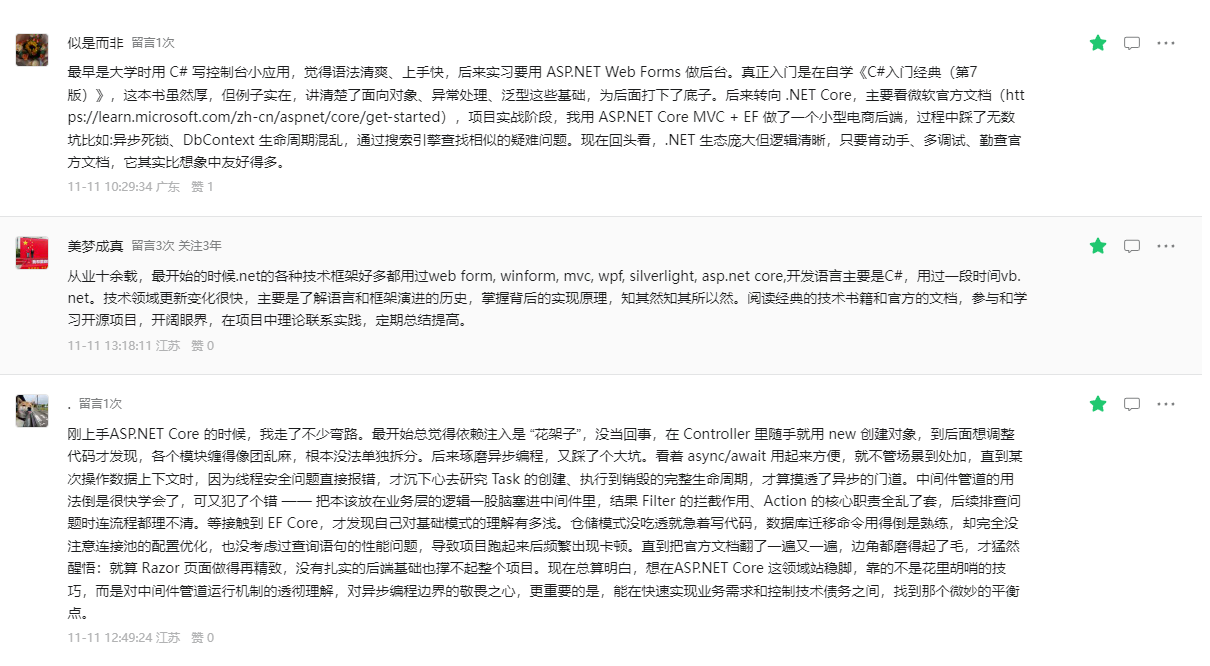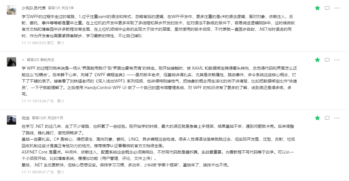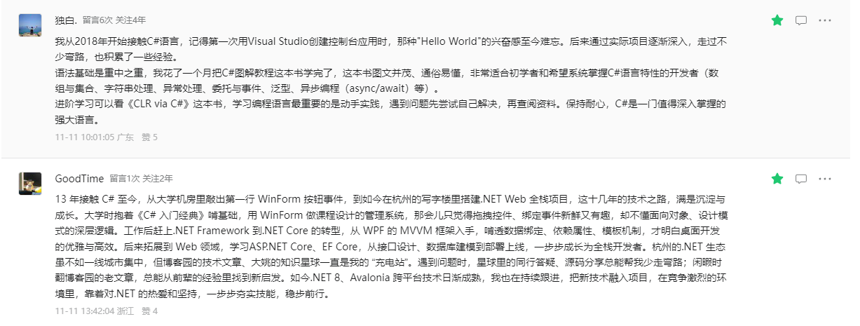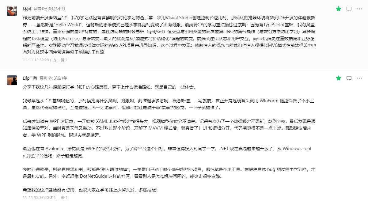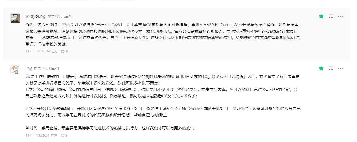 今天咱们一起来看看DotNetGuide技术社区小伙伴们学习 C#/.NET 相关技术栈的学习心得和路线。