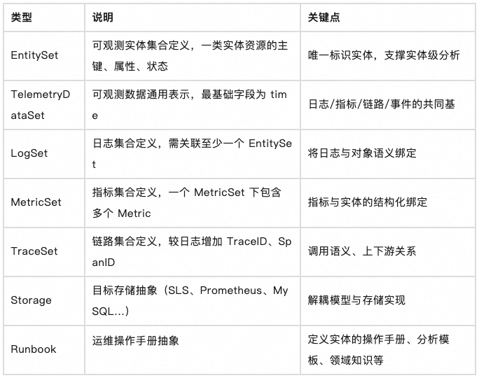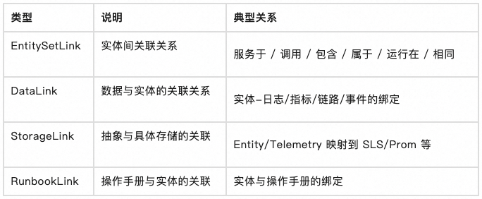 ServiceLogs、ServiceMetrics、Traces等 TelemetryDataSet,描述自身数据与调用产生的数据。建立 TelemetryDataSet 与 EntitySet 的 DataLink。