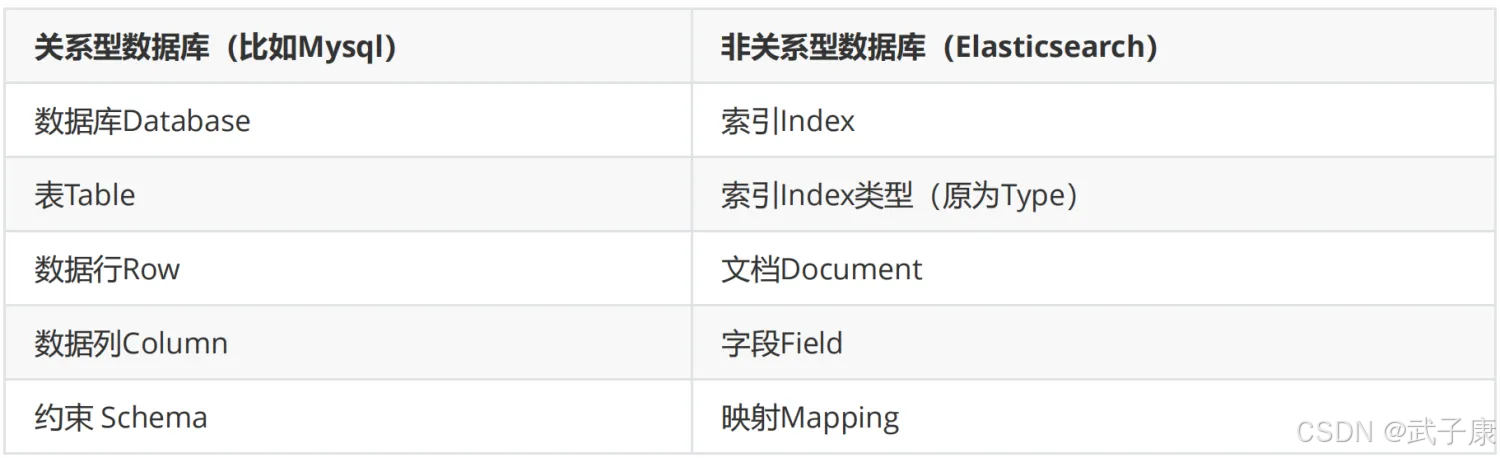 索引(Index):类似的数据放在一个索引,非类似的数据放不同索引,一个索引也可以理解成一个关系型数据
