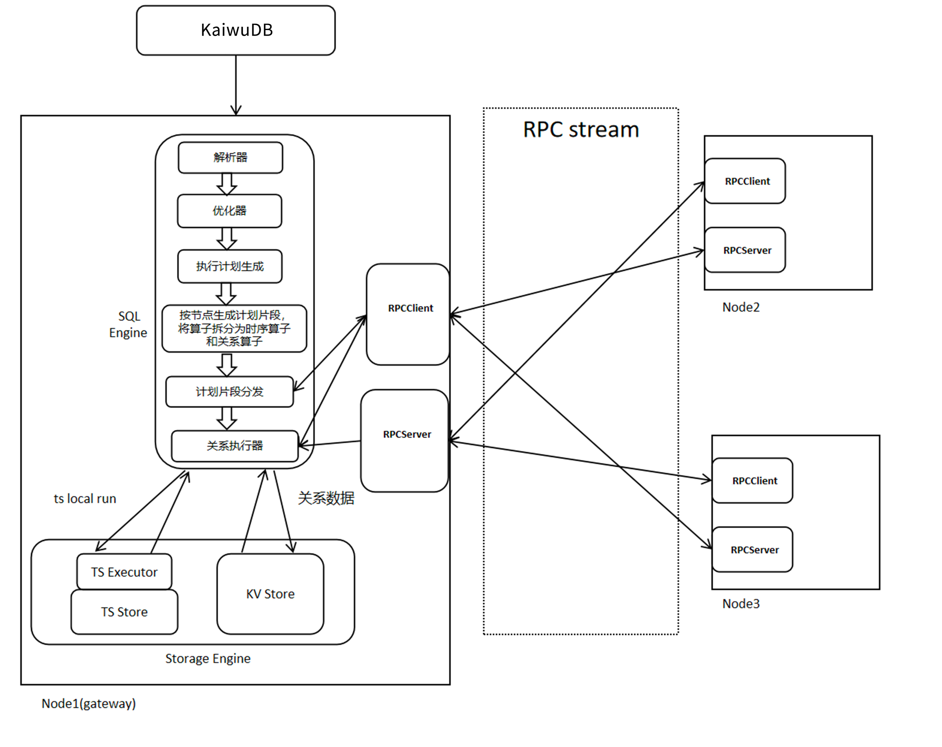 • TS Executor + TS Store(时序数据存储引擎):负责时序数据的存储与计算;对应架构图中的 "ts local run",处理本地时序数据的写入/查询。