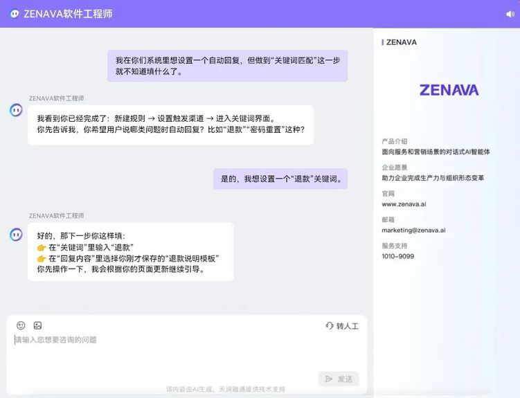 而与传统客服常常将长文档、视频和资料链接一次性丢给用户不同,ZENAVA 能根据用户的实时反馈逐步推进操作:做到哪一步、卡在哪里、是否执行成功,它都能识别并提供针对性的指导,让上手体验明显更顺畅。
