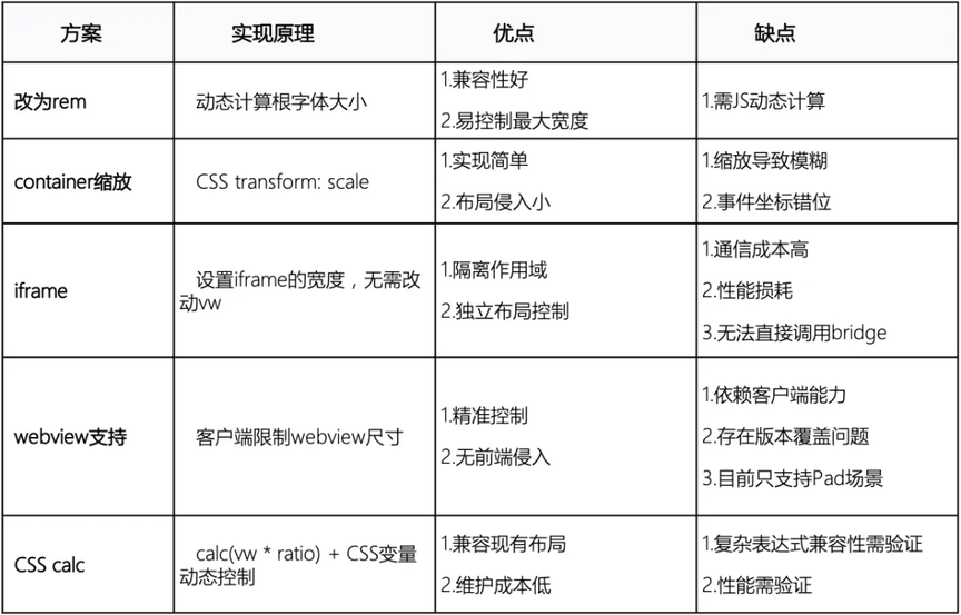 原有布局方案采用基于 vw 的等比缩放布局策略,在常规屏幕上表现良好,但在 Pad 和折叠屏等大屏设备上,因活动规范要求需限定最大展示区域,等比缩放会导致内容过宽,影响视觉效果。相比于 rem 单位可以通过设置根元素宽度来控制最大布局宽度,vw 是基于视口宽度计算的,难以有效约束内容区域,因此成为响应式适配中的技术瓶颈。