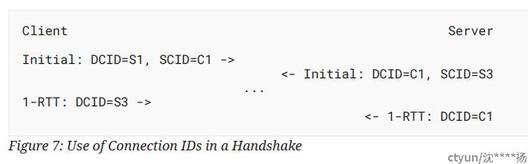 参考 RFC9000 文档,如下所示:客户端发送初始数据包标记 DCID 为 S1,服务端收到客户端的初始数据包后,响应给客户端初始数据包,此时变更了直接的 SCID 为 S3。而客户端在收到该报文后,也将自己的 DCID 设置为 S3,从而改变了 DCID 字段。