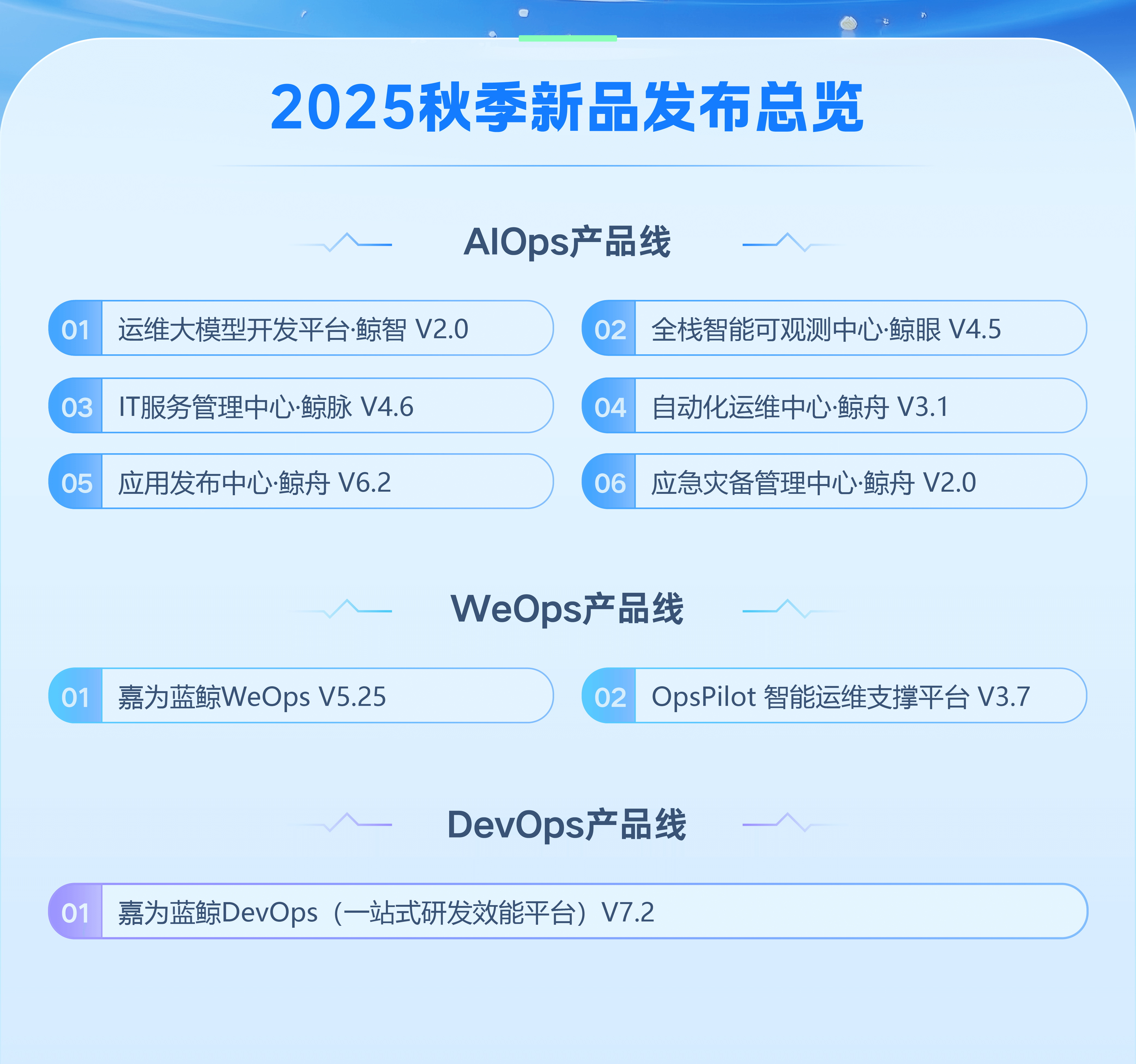 官网原文(免费申请演示):一图速通!嘉为蓝鲸2025秋季IT研运全流程新品发布总览