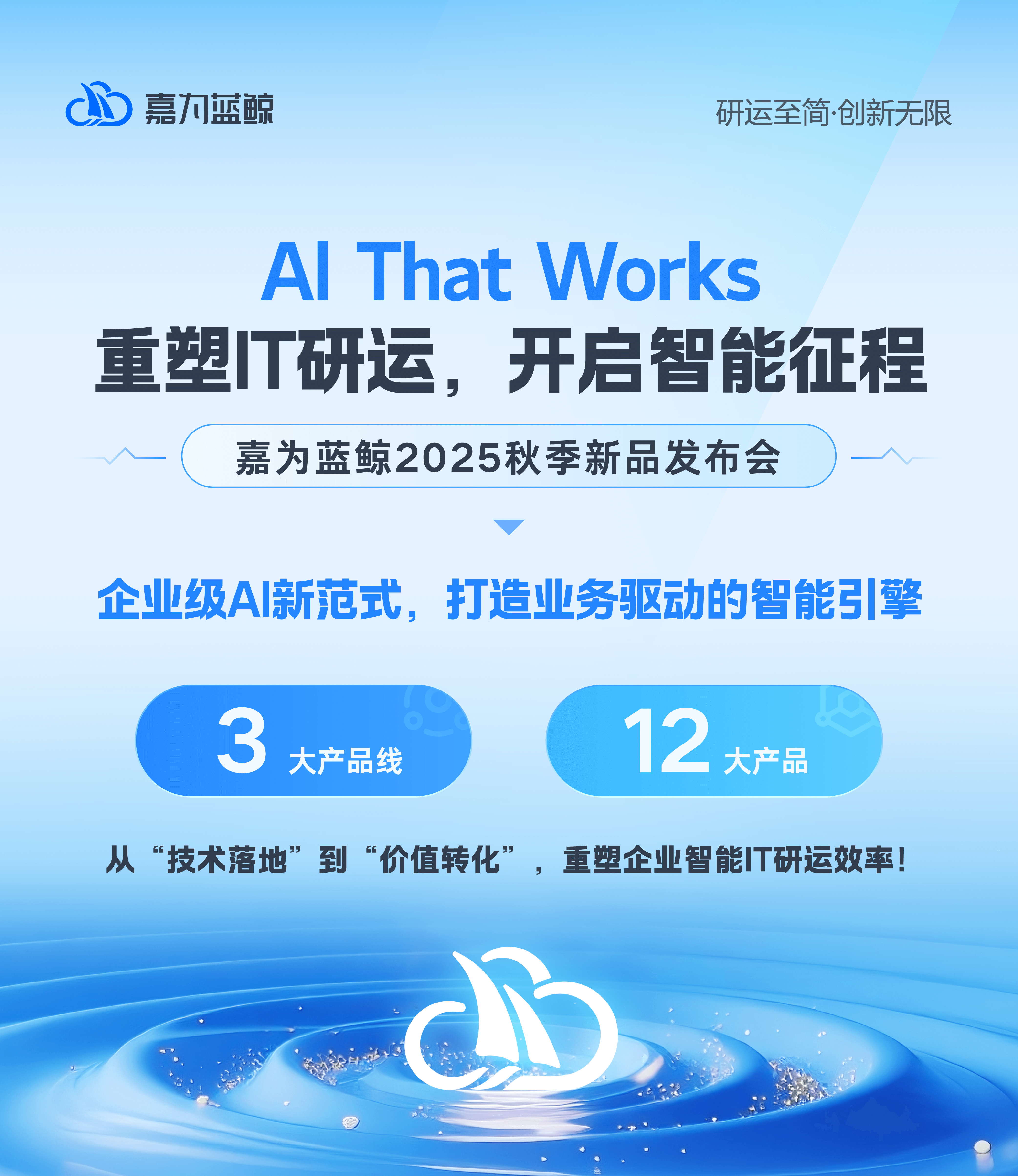 嘉为蓝鲸三大产品线秋季新品发布,覆盖 IT 研运全流程,多款产品齐上新,AI 赋能,助力企业高效进行 IT 研运!
