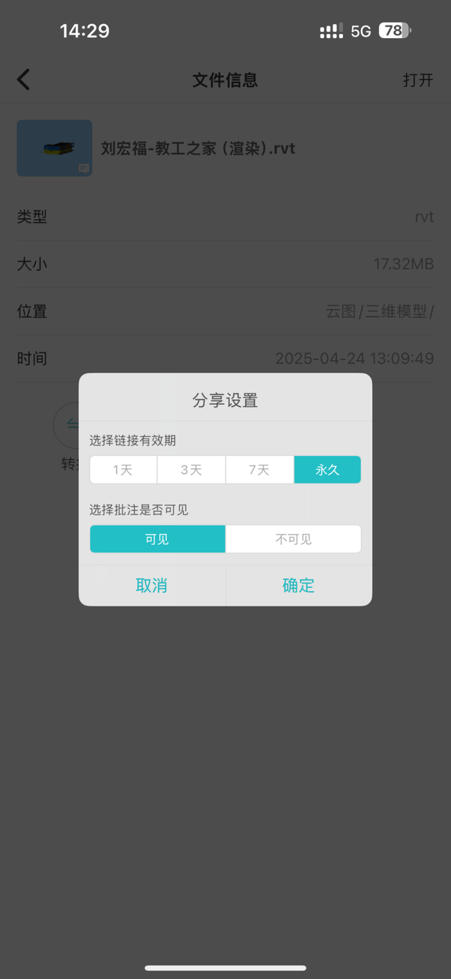 3、一键分享:点击图纸分享,把带批注的模型链接发回给我。我点开,视角直接锁定在他标记的位置,问题一目了然。