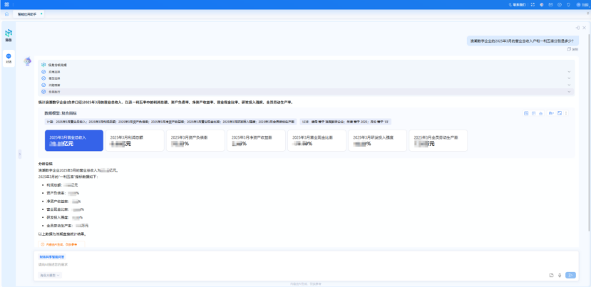 全面的深度分析能力:提供从精准查询到排名、对比、筛选、占比、汇总以及多维度分析等丰富功能,帮助用户从海量数据中抽丝剥茧,快速定位关键信息,洞察数据背后的深层逻辑。