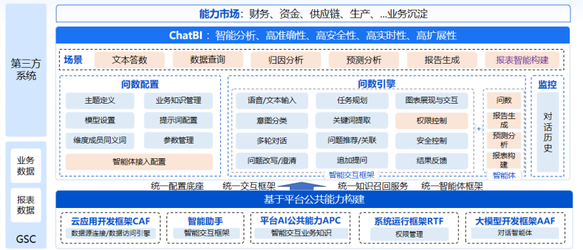 浪潮海岳 ChatBI 基于平台公共能力框架构建,包括: