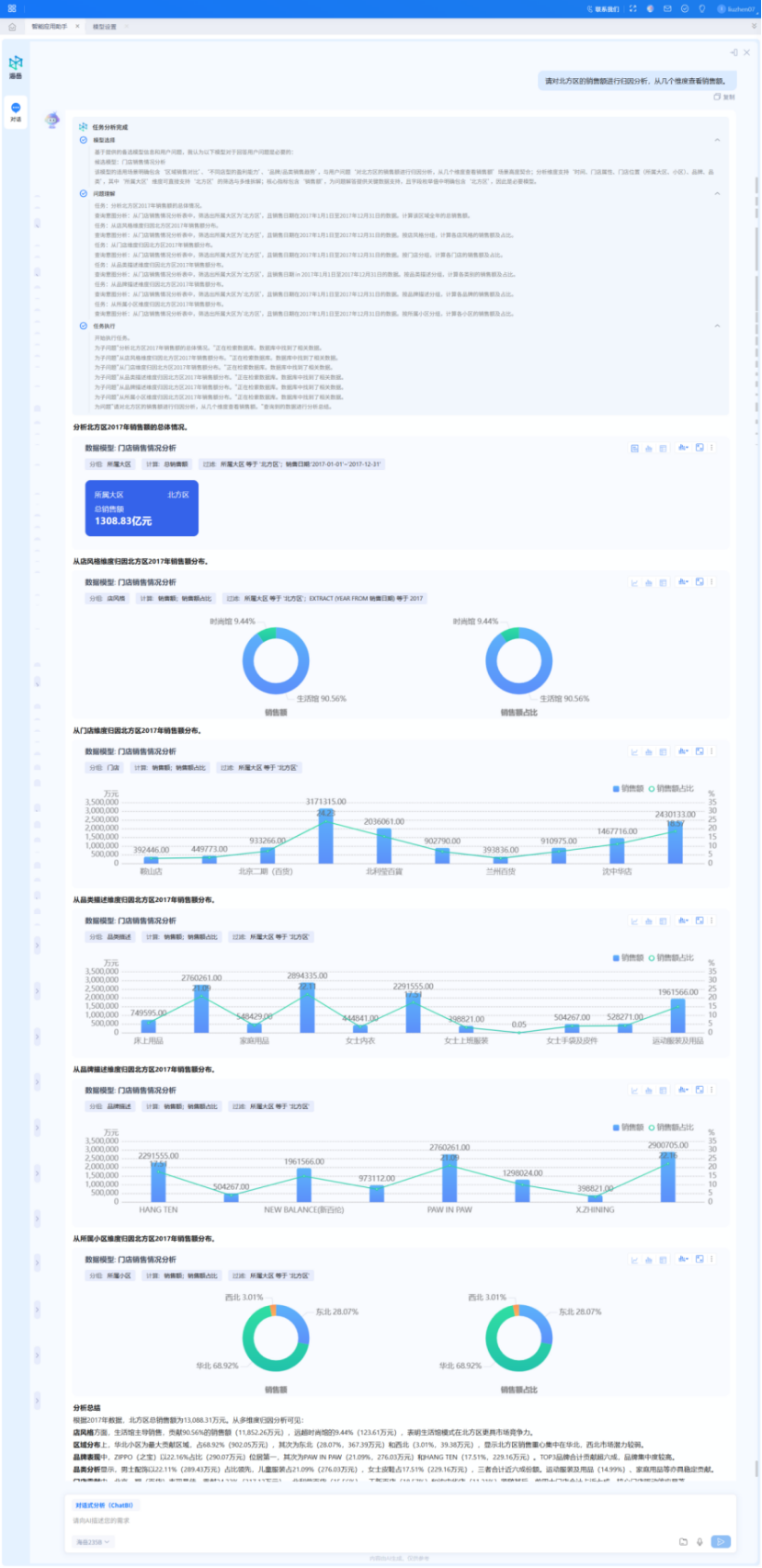 平台支持多种典型应用场景,包括文本问答、数据查询、归因分析、预测分析、报告生成与报表智能构建,满足企业在不同业务场景下的智能化分析需求。
