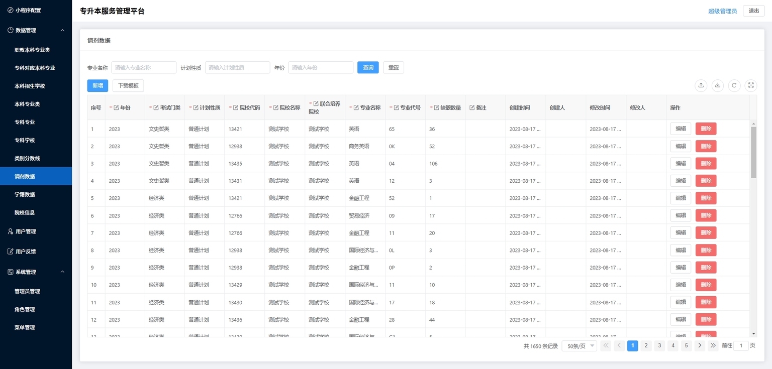 调剂数据:管理招生过程中的调剂信息,包括调剂的规则、调剂流程等。