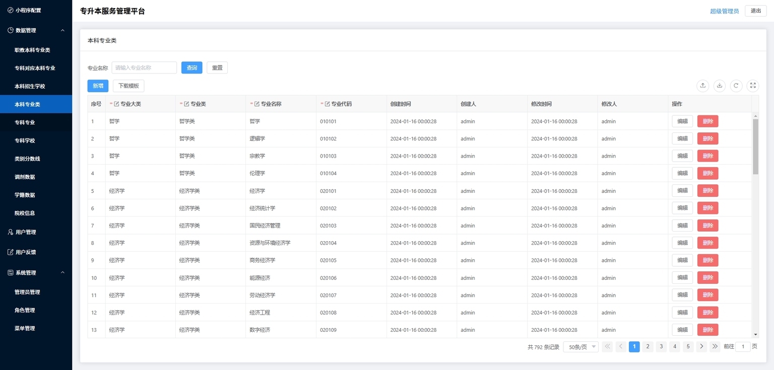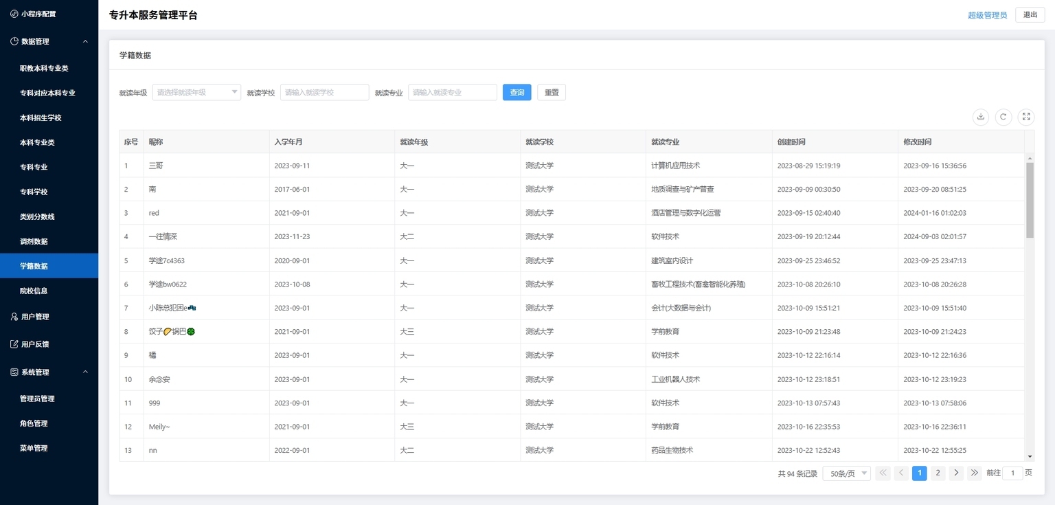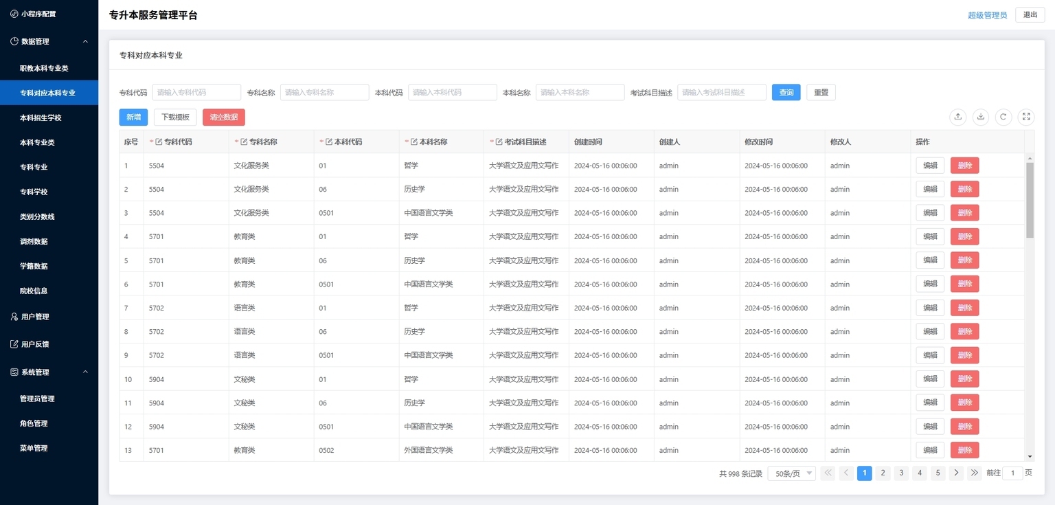 在专升本业务数字化浪潮下,专升本服务管理平台作为专升本业务与数字化管理融合的关键载体,其功能完整性与运行效率直接影响专升本信息的透明度、志愿填报的精准性及专升本服务的规范化进度。本文围绕系统功能模块与业务协同逻辑,解析如何构建 “全流程服务 + 精准赋能” 的专升本服务生态,驱动专升本工作规范与效能革新。