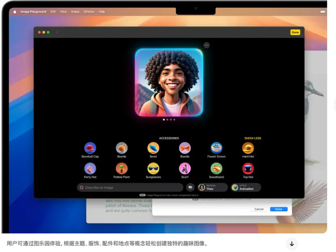 个人助理领域:Apple Intelligence 的“图乐园”功能,可根据用户描述自动生成图片;