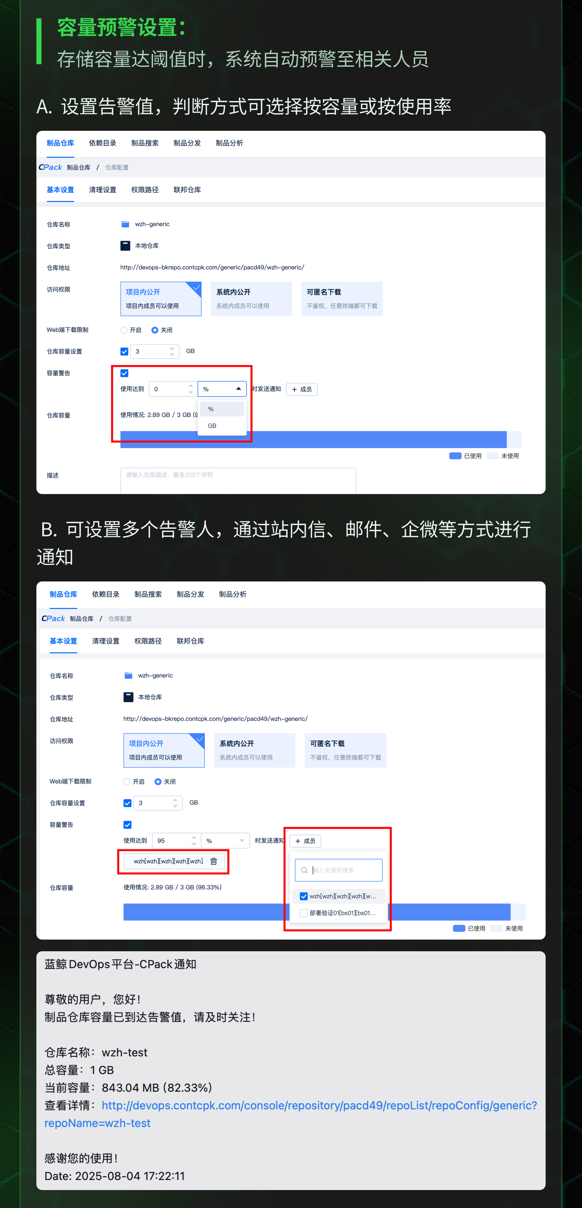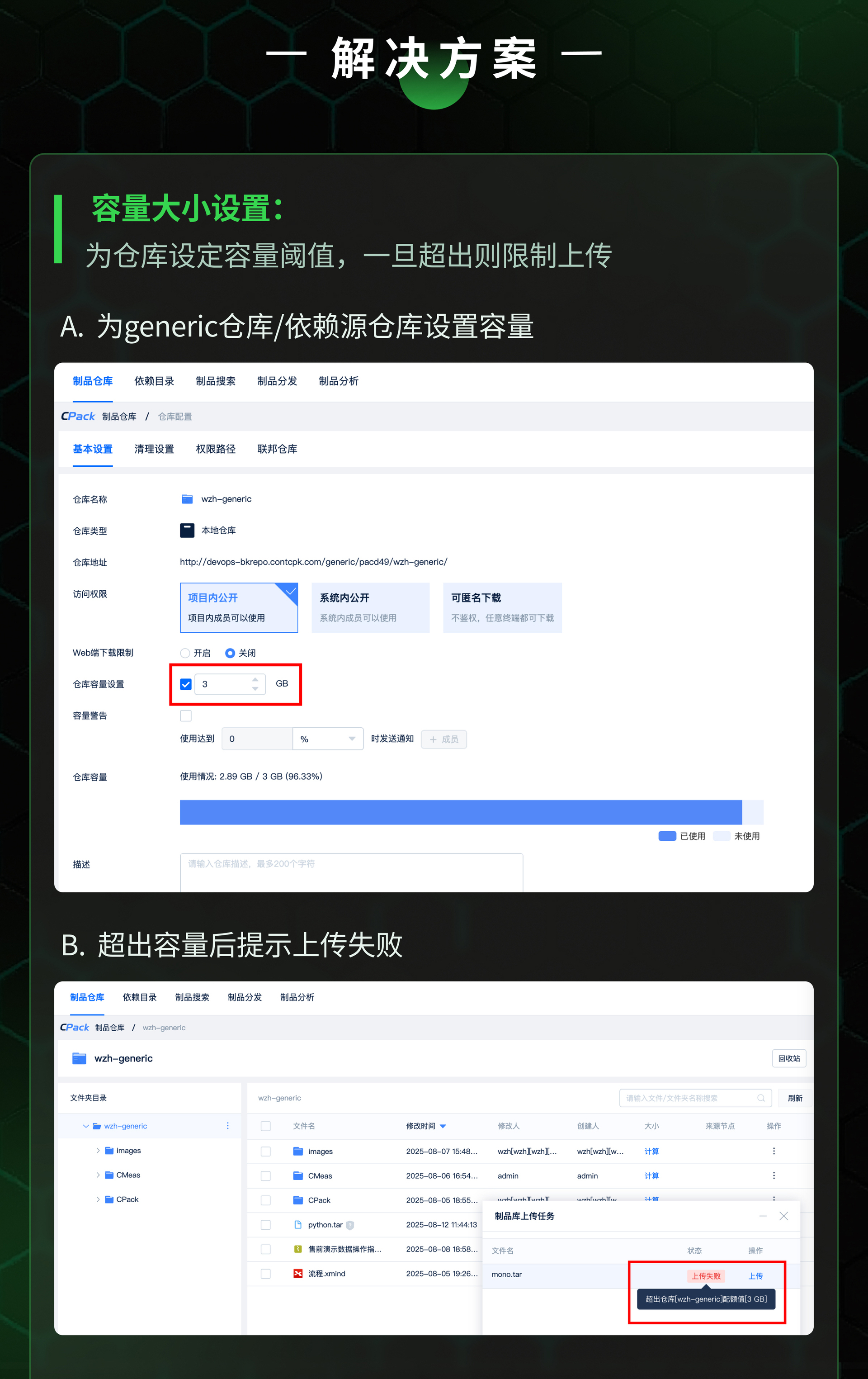 官网原文(免费申请演示):嘉为蓝鲸CPack制品管理平台:容量管控——告别存储爆满,为存储装上「安全阀」