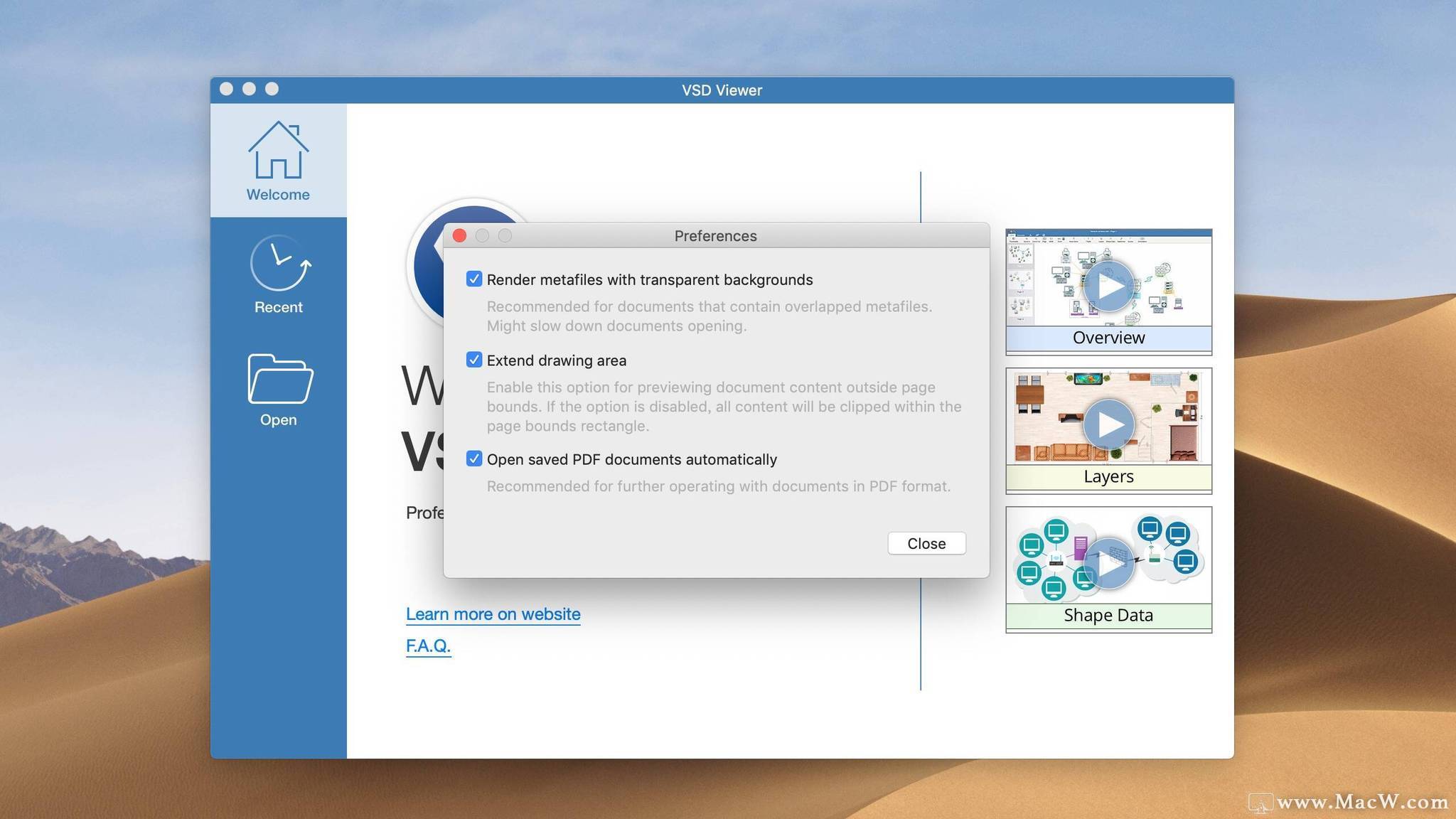VSD Viewer for mac 是 Mac os 平台上的一款帮助用户查看 VSD 文件的软件,VSD Viewer for mac 是一个专业的 vsd 文件查看软件,它为打开和打印 Visio 文件提供了简单的解决方案。
