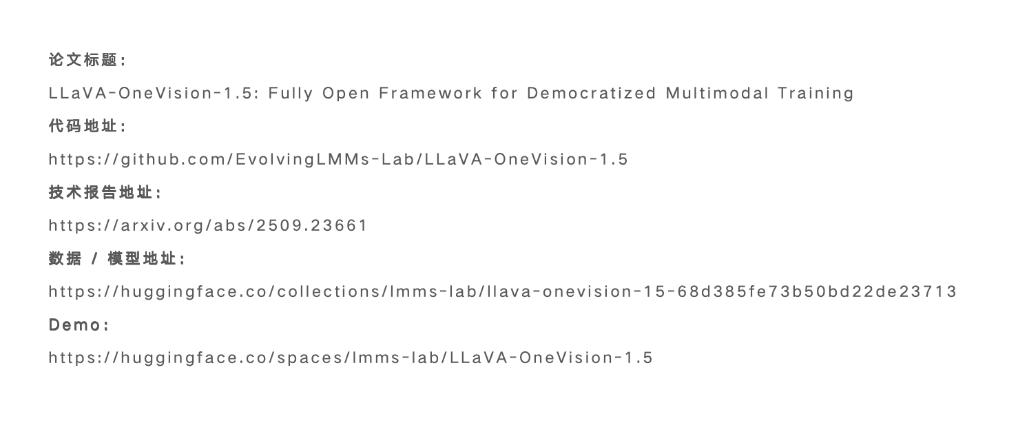1. LLaVA-OneVision-1.5:以高性能 + 低成本突破,全流程开源推动多模态 AI 普惠化