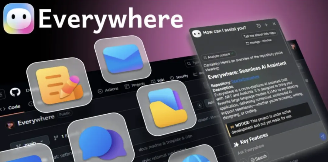 近日,在 GitHub 上开源的一款具备情境感知能力的桌面交互式 AI 助手:Everywhere。
