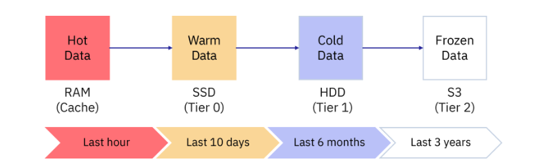 温数据(Warm Data):存储在 SSD(Tier 0)上,涵盖最近 10 天内的数据。相比热数据,温数据的访问频率较低,但仍需较快的读取速度。
