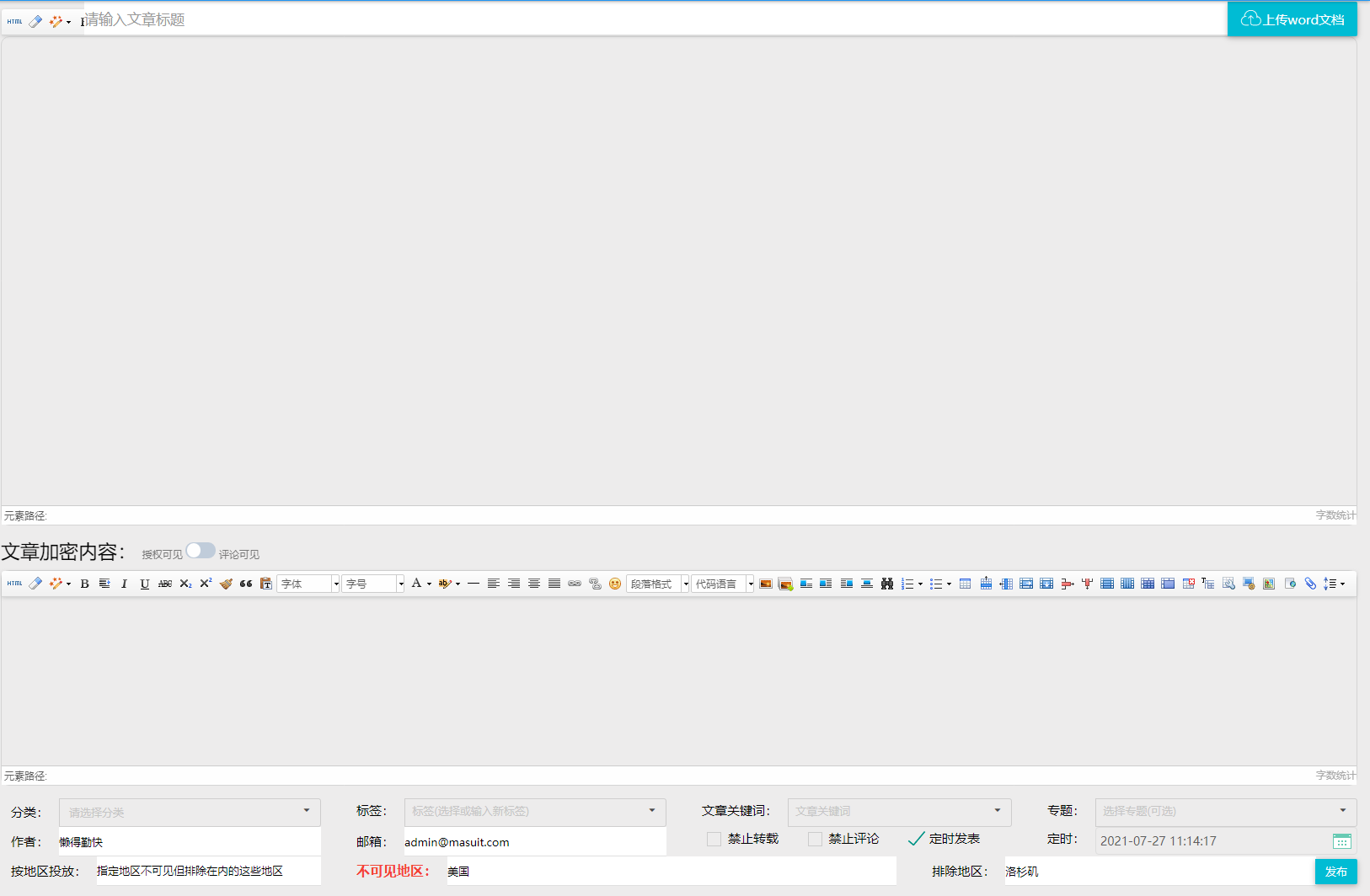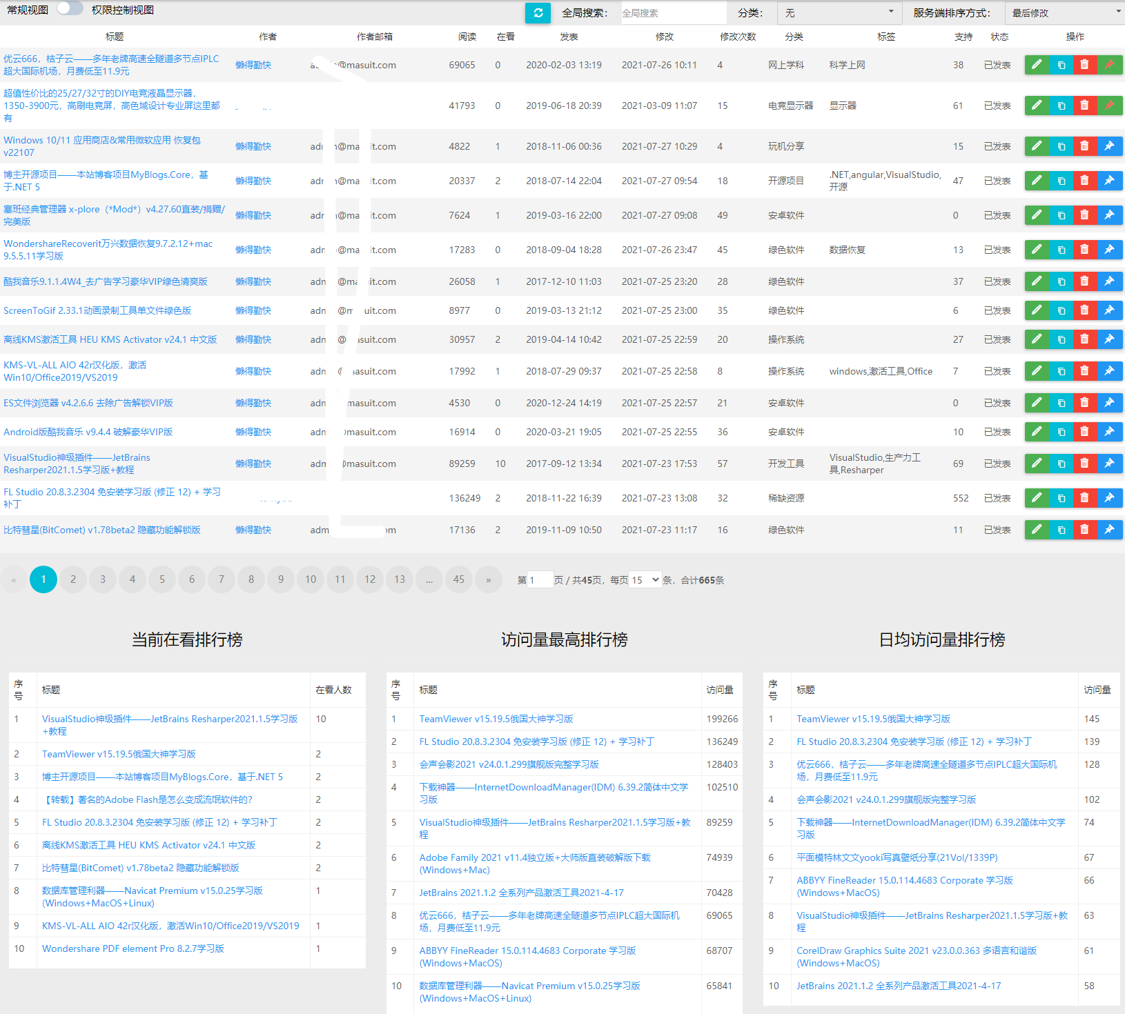 文章管理:包含文章审核、文章合并、文章列表的增删查改、分类管理、专题管理等。