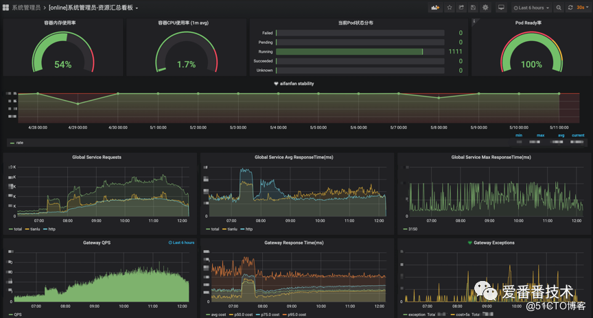 快速构建监控体系:打破之前基于 5-6 个公司内部自研产品对服务进行监控的现状,通过引入 Prometheus + grafana ,快速建设统一的产品健康度监控/观察平台。