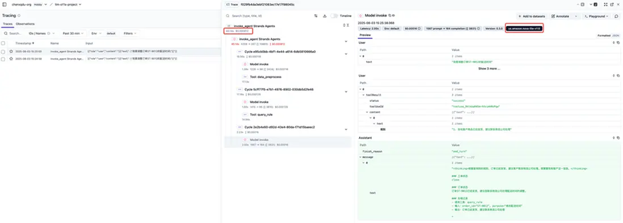 此部分将以基于 Strands Agent 构建的电商售后智能客服为例,展示如何在应用开发和生产迭代的过程中遇到的多个场景使用可观测性组件进行运维。
