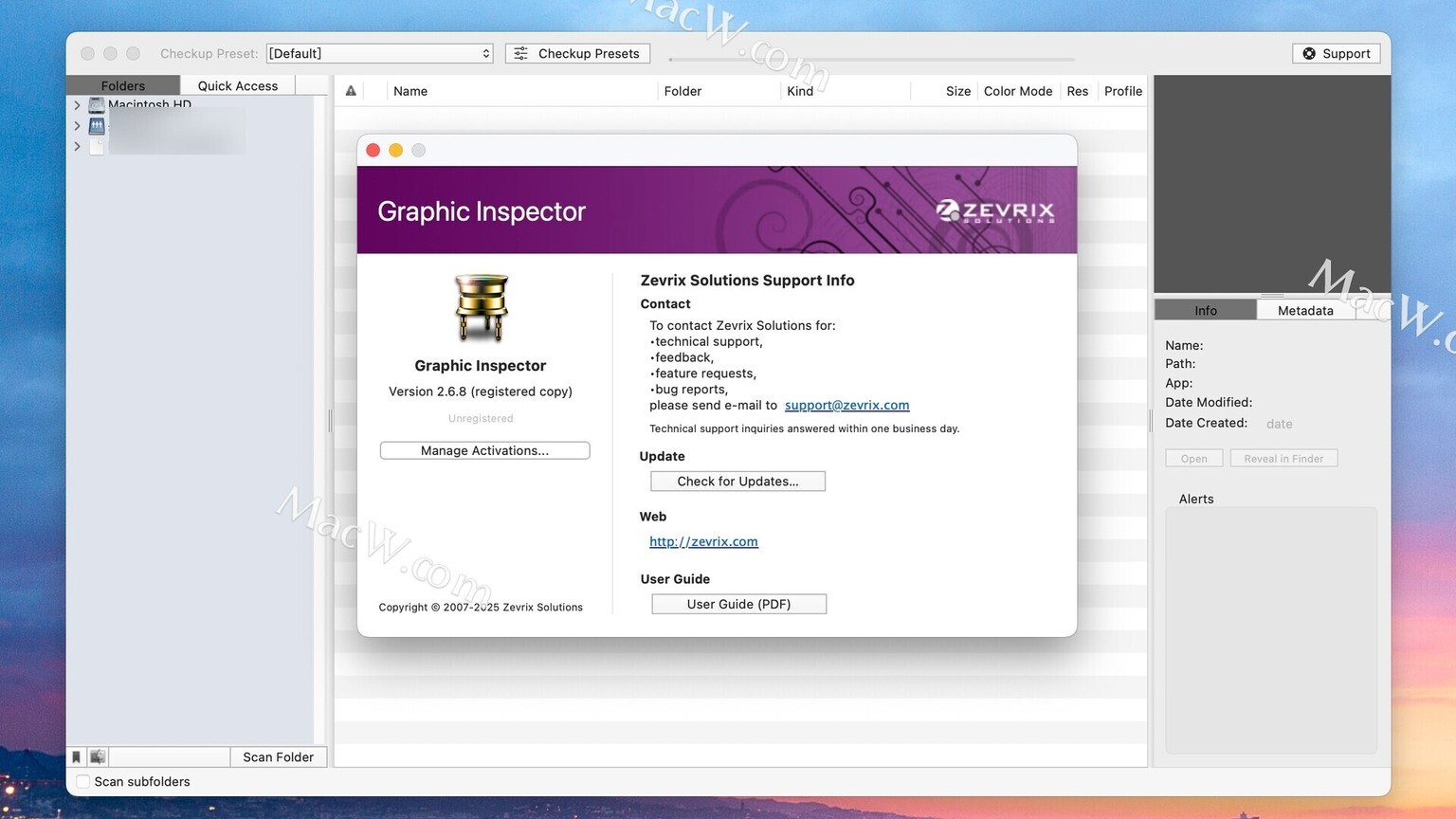 Graphic Inspector for Mac 是由 Zevrix Solutions 开发的一款软件应用程序,可帮助图形设计师和印前操作员通过一次检查多个图形文件的属性来简化他们的工作流程。