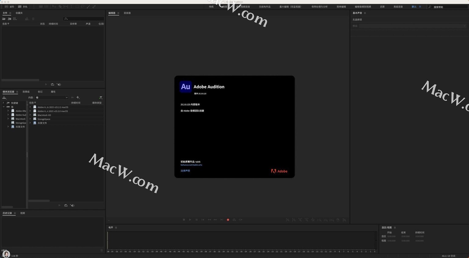 Audition 2025 for Mac 是一款专业的音频编辑软件。它支持多轨道编辑,可同时处理多个音频素材,还具备强大的音频修复功能,能去除噪音等干扰。软件提供丰富的音频效果和处理工具,如均衡器、压缩器等。此外,它可与 Adobe Premiere Pro 等软件无缝集成,方便音频与视频的协同制作。