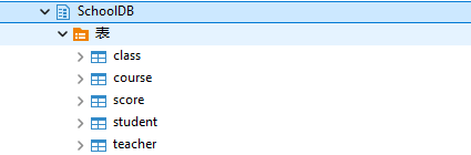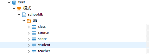 批量库表输出表数量,同步前,schooldb 模式下是没有表的,同步后,新增了表