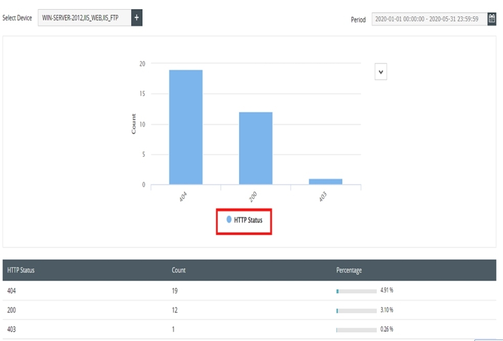 建议:切勿关闭日志记录,因为需要日志来排查 Web 服务器问题并进行取证分析。请注意,使用高级日志记录选项可能会导致内存泄漏。Microsoft IIS 日志分析器工具(如 EventLog Analyzer)会自动收集、分析、分析和存档 IIS 日志。