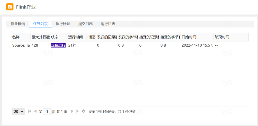 通过如上定义,系统会自动形成一个数据采集任务,当任务启动后,系统将该任务发送至 flink 引擎对源端数据进行实时监控采集,采集的数据将存储在湖仓主题的模型中。