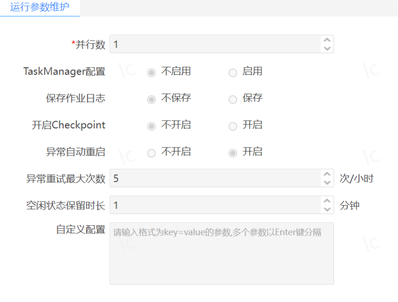 定义任务并行数、TaskManager 配置、checkpoint、异常自动重启等配置;