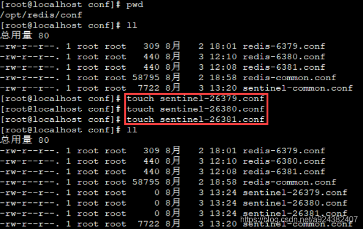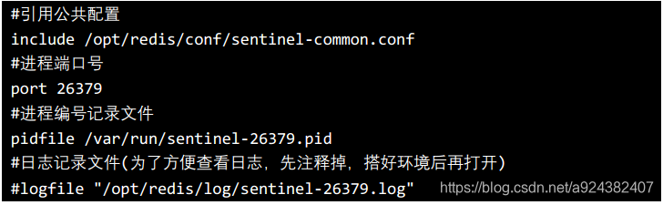 复制 sentinel-26379.conf 的内容至 sentinel-26380.conf sentinel-26381.conf 并 且修改其内容,将 26379 替换即可。