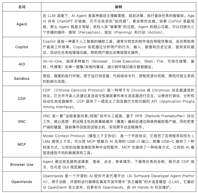 面向 Agent 的浏览器环境,核心在于提供出 CDP 和 VNC,主流 Browser Use 框架都可以直接使用;