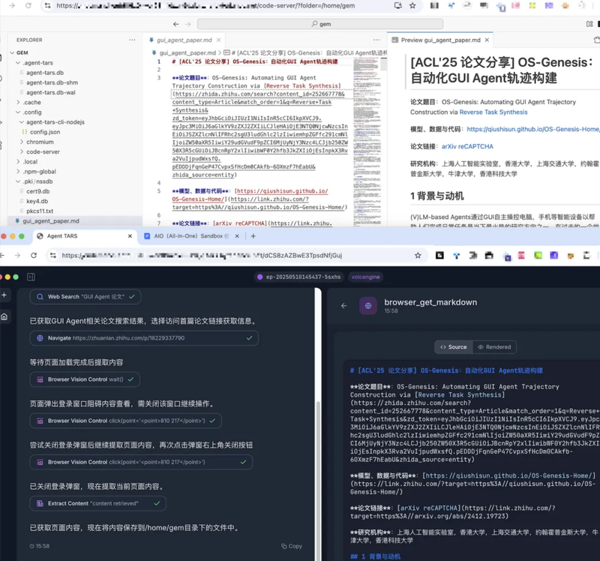 Agent 能够自主感知环境、规划步骤、调用工具,能够像人类一样操作计算机:自动浏览网页收集信息、生成并运行代码分析数据、执行系统命令管理文件,甚至通过可视化界面完成复杂的多步骤操作。这种能力使 Agent 的交付成果接近甚至超越人类专业水准。