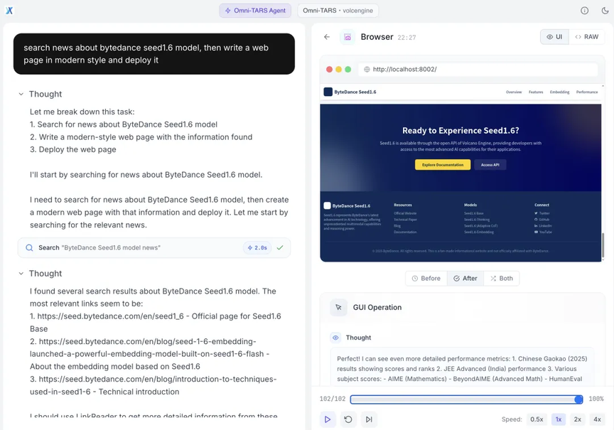 搜索关于字节跳动 Seed1.6 模型的新闻,然后以现代风格编写一个网页并部署