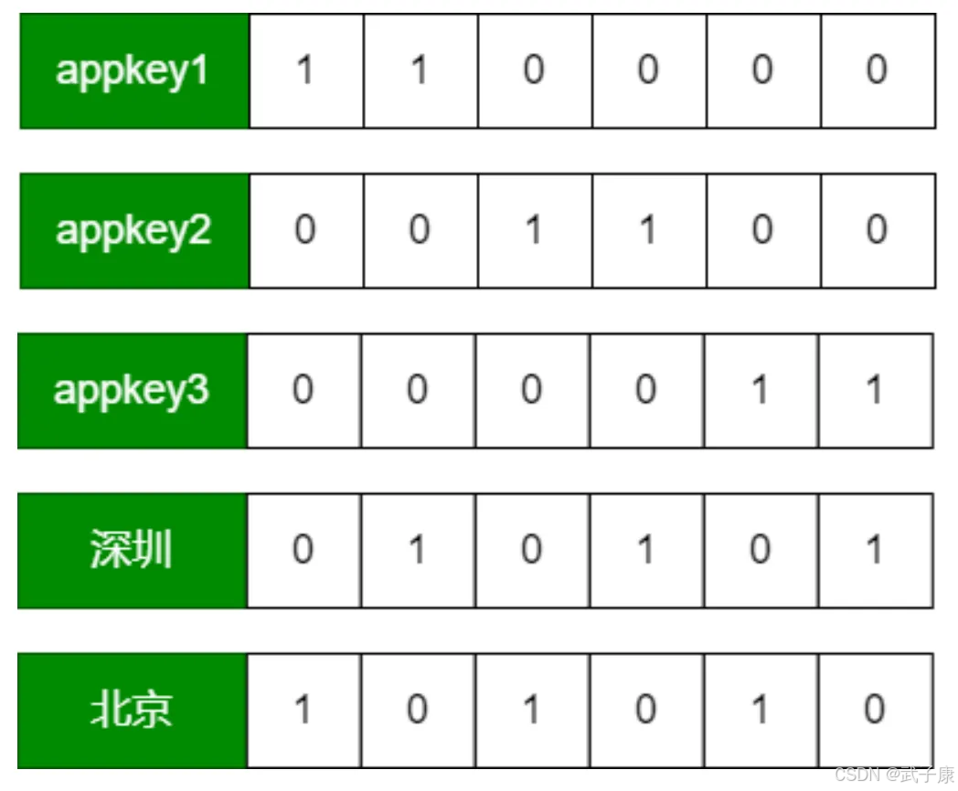 appkey in ('appkey1', 'appkey2') and area='北京' 查到各自的 bitmap