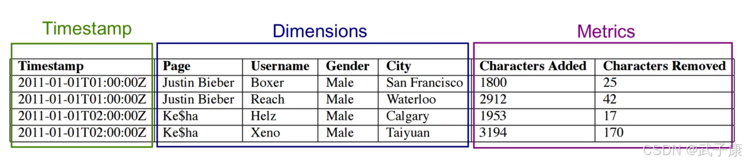 类型 2 维度列:用来过滤 Fliter 或者组合 GroupBY 的列,通过是 String、Float、Double、Int 类型