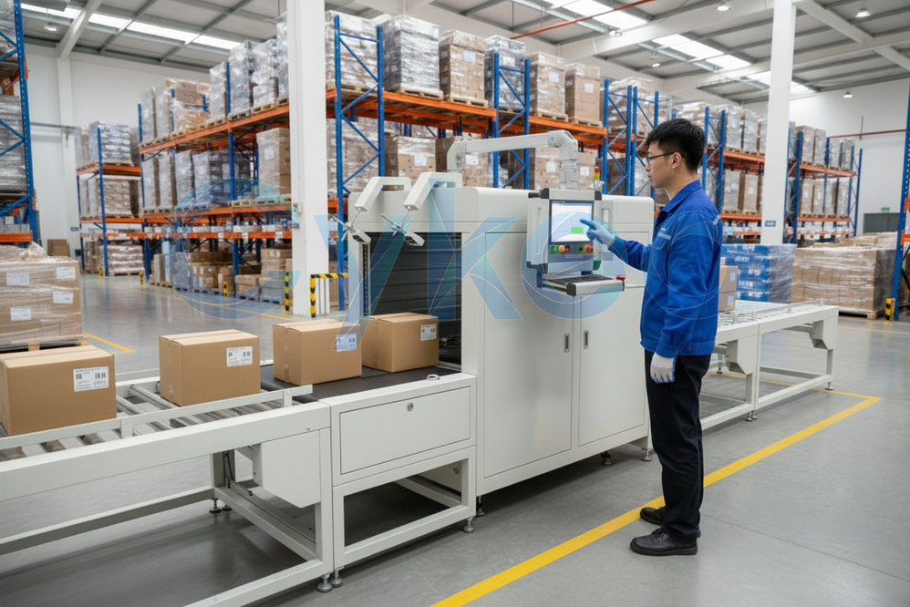 在以往的出货流程中,仓库人员需要手动扫描快递单、称重、贴标,再录入系统,每箱货往往要花费几十秒。面对几千上万件的订单,工作量极大。而 CK-TP2A 通过自动输送线连接前端分拣区与出货复核区,当货箱进入隧道机入口,设备会同步执行以下操作: