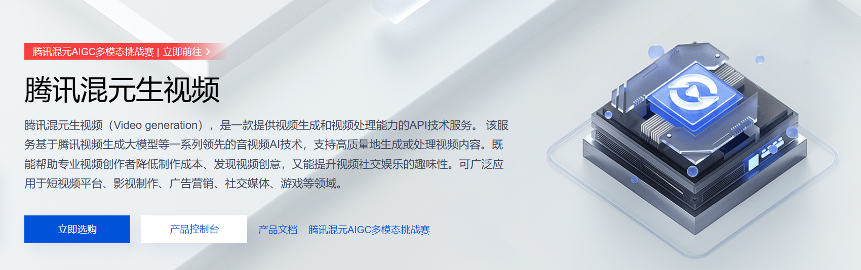 腾讯混元生视频(Video generation),是一款提供视频生成和视频处理能力的 API 技术服务。 该服务基于腾讯视频生成大模型等一系列领先的音视频 AI 技术,支持高质量地生成或处理视频内容。既能帮助专业视频创作者降低制作成本、发现视频创意,又能提升视频社交娱乐的趣味性。可广泛应用于短视频平台、影视制作、广告营销、社交媒体、游戏等领域。