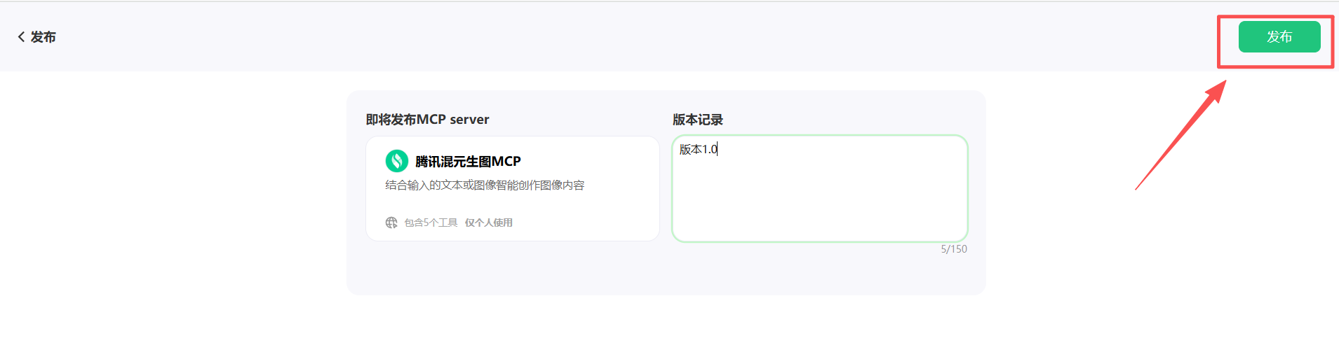 在 MCP Server 发布页面输入版本记录后再次点击页面【发布】