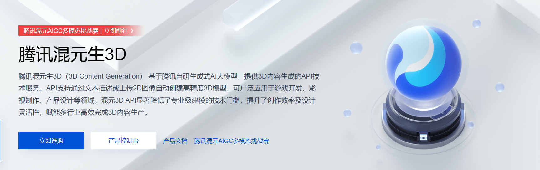 腾讯混元生 3D(3D Content Generation) 基于腾讯自研生成式 AI 大模型,提供 3D 内容生成的 API 技术服务。API 支持通过文本描述或上传 2D 图像自动创建高精度 3D 模型,可广泛应用于游戏开发、影视制作、产品设计等领域。混元 3D API 显著降低了专业级建模的技术门槛,提升了创作效率及设计灵活性,赋能多行业高效完成 3D 内容生产。